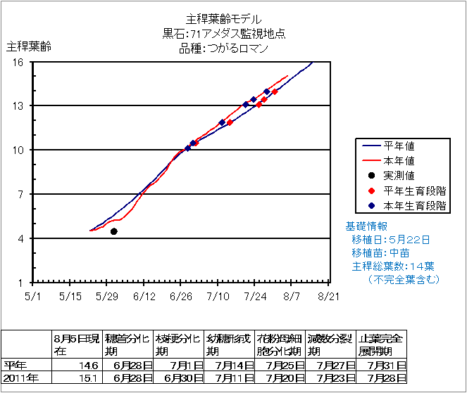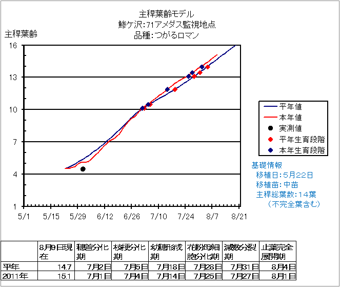 | 青森県鯵ヶ沢 | つがるロマン | <葉齢進度予測編> | ・ | <穂の発育予測編> | ・ | <玄米の発育予測編> |