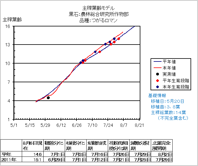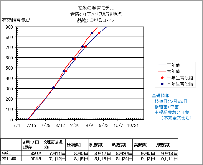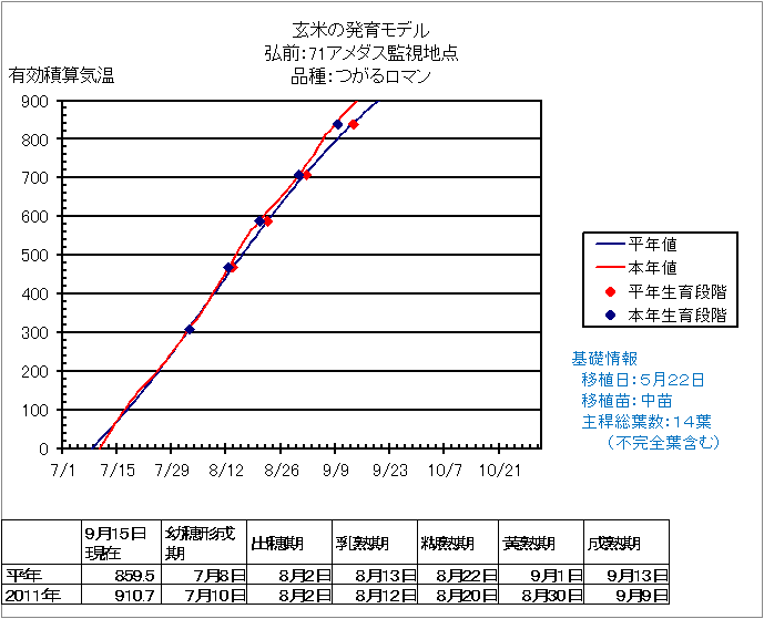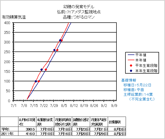 | 青森県弘前 | つがるロマン | <葉齢進度予測編> | ・ | <穂の発育予測編> | ・ | <玄米の発育予測編> |