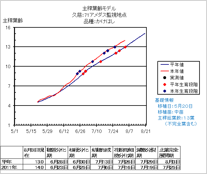 | 青森県八戸市 | 現地試験圃場 (かけはし) | <葉齢進度予測編> | ・ | <幼穂の発育予測編> | ・ | <玄米の発育予測編> |