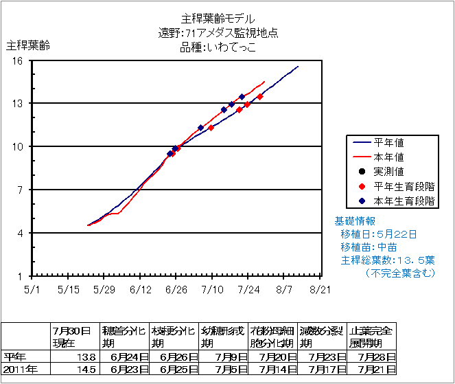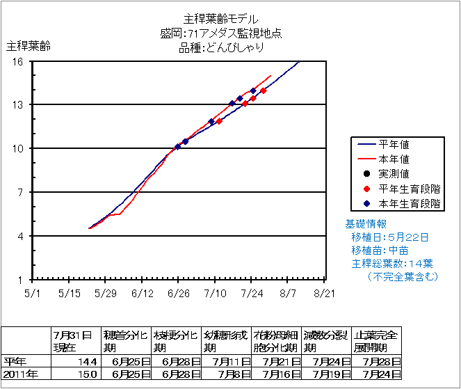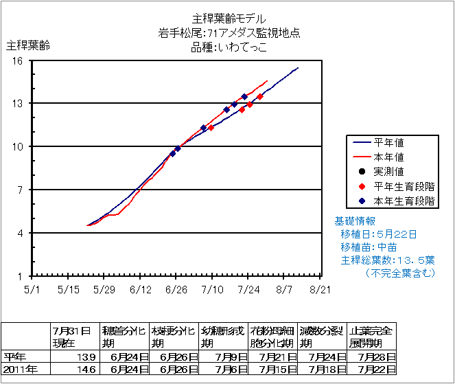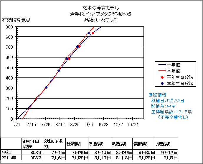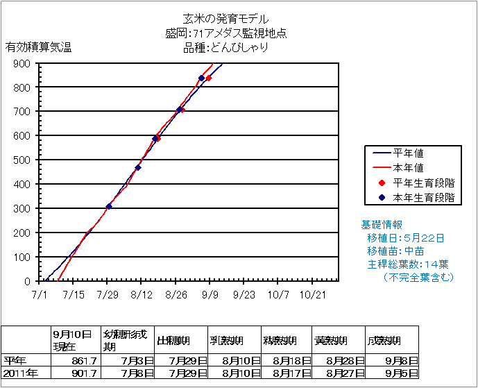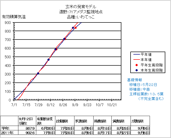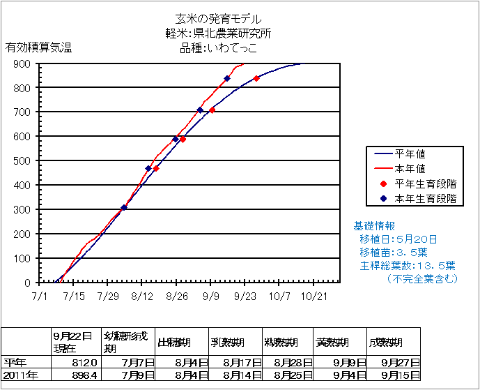 | 岩手県千厩 | あきたこまち | <葉齢進度予測編> | ・ | <穂の発育予測編> | ・ | <玄米の発育予測編> |