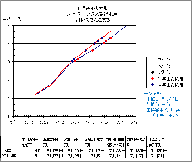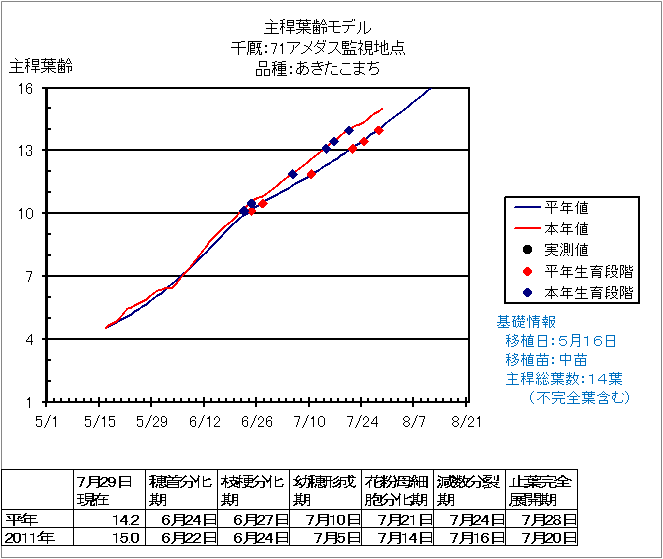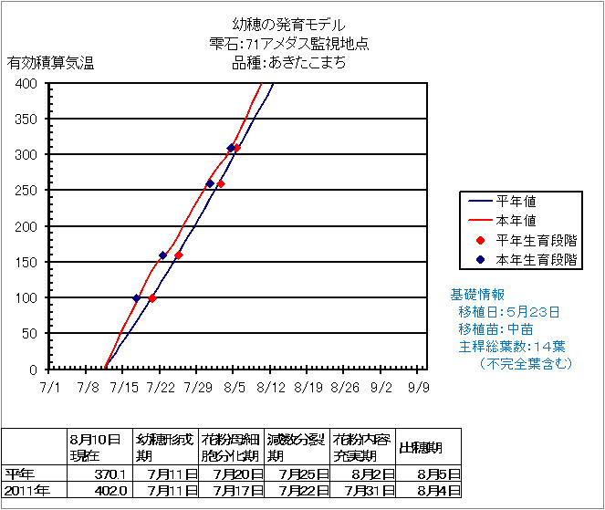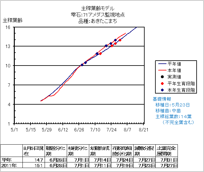 | 秋田県農業試験場 | あきたこまち | <葉齢進度予測編> | ・ | <穂の発育予測編> | ・ | <玄米の発育予測編> |