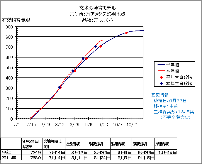 | 青森県六ヶ所 | まっしぐら | <葉齢進度予測編> | ・ | <穂の発育予測編> | ・ | <玄米の発育予測編> |