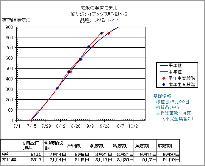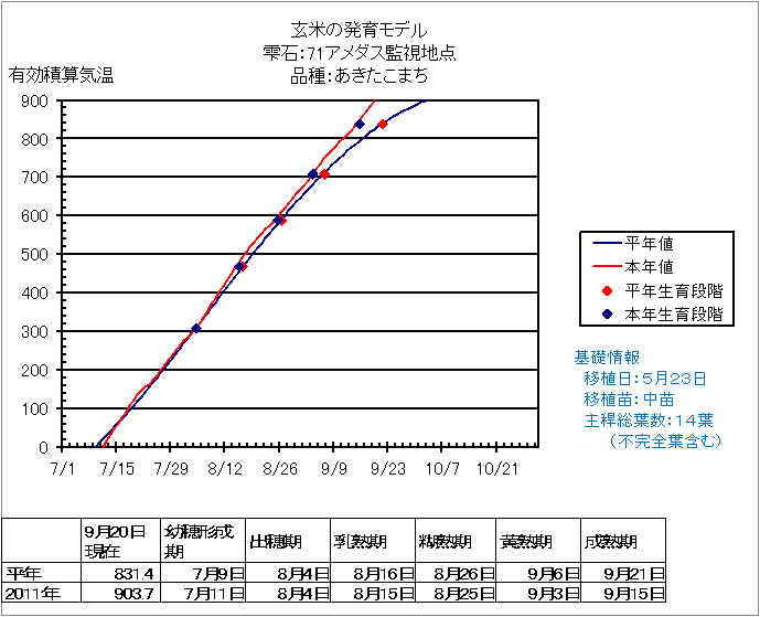 | 秋田県角館 | あきたこまち | <葉齢進度予測編> | ・ | <穂の発育予測編> | ・ | <玄米の発育予測編> |