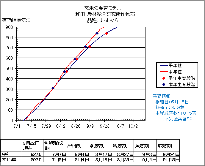 | 秋田県大曲 | あきたこまち | <葉齢進度予測編> | ・ | <穂の発育予測編> | ・ | <玄米の発育予測編> |