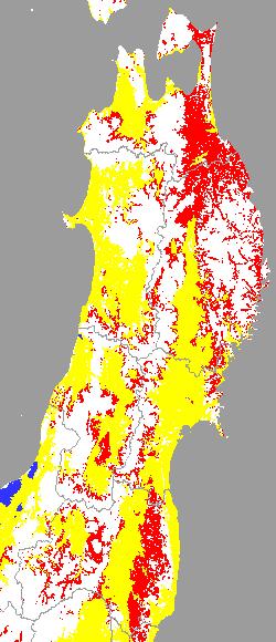 出穂・開花にみられた圃場間、圃場内、株内のバラツキは登熟期に入っても、登熟進度のバラツキに現れています。また、全般に登熟は遅れ気味にあると考えられます。 今後1週間程度は、前線や台風4号の影響により東北全域で雨の日が多いと予想されています。また、台風4号は北上して東北地域に接近する可能性もあります。強風や強雨による倒伏、日照不足による登熟遅延や穂いもちの蔓延に厳重な警戒が必要です。各県の技術・予察情報と左図を参考にして、適正な水管理と穂いもち防除を徹底してください。 |