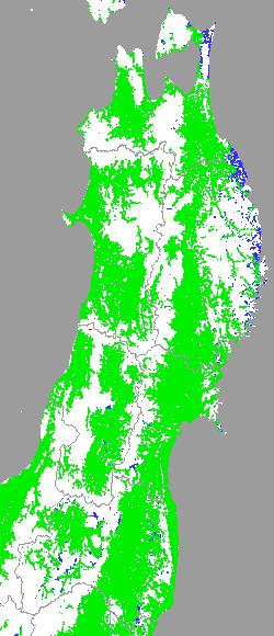 現在、東北地域の水稲の生育は減数分裂期から幼穂形成期にあり、作柄やいもち病の発生を左右する重要な発育段階にあります。 過去7日間の地帯別平均的気象経過は上表の通りです。気温は平年より高く推移しています。今までの気象と生育経過をみると、太平洋側の地帯においては生育の進み方が平年より早くなっているものと推察されます。そのため、栽培管理に当たってはこの点を十分考慮して下さい。 今後の天候推移(下図警戒メッシュ)と予報には特段の注意を払い、また各県の稲作技術・予察情報ならびにホームページの『図説:水管理』『生育・作柄情報』−『発育予測情報』『葉いもち予察情報』頁などを参考にして、適正な水管理、適正な追肥時期と量、葉いもちの早期発見・早期防除を実施して下さい。 <低温時> ● 幼穂形成期前後にある水稲:前歴深水(10cm程度)管理の実施。適正な追肥時期と量の判断。また危険期深水管理のできる態勢の準備。 ● 危険期に近づくつつある水稲:危険期深水(可能な範囲で。できれば18cm〜20cm程度)管理の実施。 | ||||||||||||||||||||||||||||||||||||||