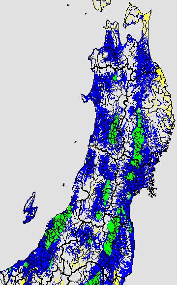 | 警戒メッシュ説明: 右図は平均気温の過去7日間平均値を水田分布メッシュ対象で示したものです。水管理等の参考にして下さい。 なお、平均気温区分には次の基準温度を参考にしています。 ○冷温障害要注意:13度以下 ○水管理要注意(保温的水管理):16度以下 ○葉いもち注意:19度以上 | ||||||||||||