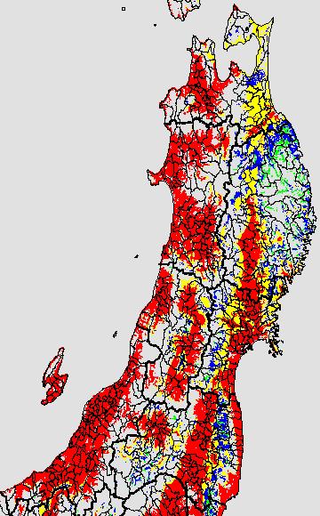 | 現在、東北地域の水稲は乳熟期〜黄熟期直前にあります。 過去7日間の地帯別平均的気象経過は上表の通りです。気温は全般的に平年並み、日照時間は平年より多く推移しています。今後は天気が周期的に変化し、平均気温は平年並みと予想されています。 アメダス監視地点、モニター圃場や盛岡の穂の発育予測図からみると、太平洋側を中心に生育が7〜12日程度早くなっています。宮城県などの早い稲は黄熟期を迎えようとしています。また多くの稲は乳熟期から糊熟期の間にあります。各県の技術・予察情報、図説(高温障害編)の情報ならびに高温障害警戒メッシュ図と発育予測などを参考にして、生育がかなり進んでいることを十分に考慮して適切な栽培管理を実施して下さい。また8月末から9月上旬に成熟期に達するものもあると予想されることから、収穫準備は早めに取り掛かるようにして下さい。 また、昨年のように出穂・開花期から糊熟期までの期間に異常な高温に長期間遭遇すると、光合成、呼吸、転流過程に悪影響が出て、玄米品質の劣化が起こります。 ○異常高温時:出穂・開花期〜糊熟期までの期間は水稲の水消費量が最も多い時期に当たります。深水にして水を十分に供給することが重要です。また異常高温が長く続く時にはさらに用水の掛け流しで水温・地温を下げるように努める。 ○高温時:間断灌漑で根の活力を維持し、稲体の健全性を保持する。 |