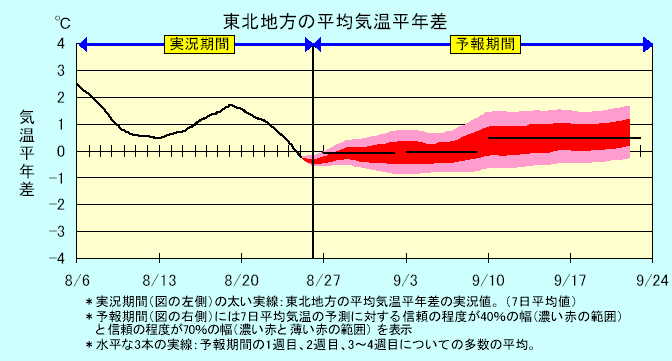 <特記事項> ・山形県(7月14日):斑点米カメムシ類に関する注意報が出されています。 ・秋田県(7月14日):アカヒゲホソミドリカスミカメによる斑点米の注意報が出されています。 ・宮城県(7月26日):斑点米カメムシ類に関する警報が出されています。 ・岩手県(7月29日):カメムシ類(斑点米の原因となるカスミカメムシ類)に関する注意報が再度出されています。 ・青森県(8月2日):斑点米カメムシ(アカヒゲホソミドリカスミカメ)に関する注意報が出されています。 ・岩手県(8月10日):カメムシ類(斑点米の原因となるカスミカメムシ類)に関する警報が出されています。 ・山形県(8月12日):いね斑点米カメムシ類に関する注意報が出されています。 ・栽培管理上参考にすべき各種気象情報については、仙台管区気象台ホームページの「気象情報発表」コーナー(http://www.sendai-jma.go.jp/)を参照ください。 | ||||||||||||