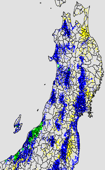 | 警戒メッシュ説明: 右図は平均気温の過去7日間平均値で活着障害を監視する目的で、水田分布メッシュを対象に示したものです。育苗管理や田植え時期の判定等の参考にして下さい。なお、警戒メッシュは下の基準温度を使用しています。(詳細は気象障害監視のポイントを参照。) 基準気温 障害の程度 @17℃未満 かなりの被害が予想されるため深水管理を実施する。 A17℃〜20℃ 耐冷性の弱い品種などでは被害が予想されるため、深水管理を実施する。 B20℃〜22℃ 予防的な深水管理の実施を検討する。 C22℃以上 被害は予想されない。 <特記事項> ・葉いもちの感染好適条件が福島県、秋田県内陸部などで頻度高く現れています。葉いもちの発生と蔓延には警戒が必要です。早期発見と防除を徹底して下さい。 ・山形県(7月12日付け)で葉いもちに関する注意報が出されています。 ・岩手県(7月14日付け)で葉いもちに関する注意報が出されています。 ・福島県(7月14日付け)で葉いもちに関する注意報が出されています。 ・宮城県(7月6日付け)で斑点米カメムシ類に関する注意報が出されています。 ・岩手県(7月14日付け)で斑点米カメムシ類に関する注意報が出されています。 ・栽培管理上参考にすべき各種気象情報については、仙台管区気象台ホームページの「気象情報発表」コーナー(http://www.sendai-jma.go.jp/)を参照ください。 | ![]() | ||||||||||||