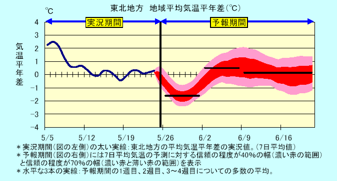 | <特に注意を要する事項> 期間の前半は気温の変動が大きく、1週目は低く、2週目は高くなる見込みです。 |
