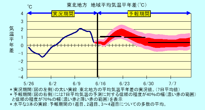 | <特に注意を要する事項> 東北地方では気温の高い状況が続いています。向こう1か月も前半を中心に気温が高い見込みです。 |