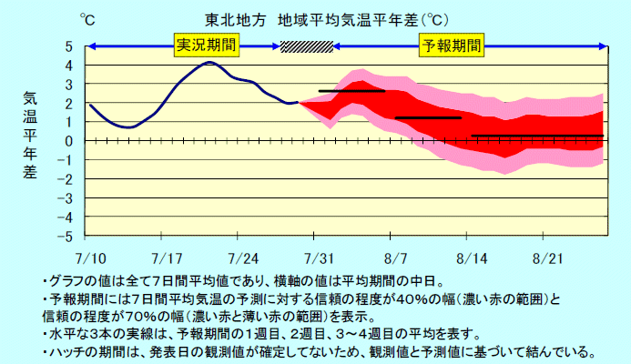 <特記事項> ・宮城県(7月8日)でカメムシに関する防除情報が出されています。 ・宮城県(7月23日)で葉いもちに関する防除情報が出されています。 ・秋田県(7月26日)で穂いもちに関する防除対策情報が出されています。 ・福島県(7月14日)で葉いもちに関する注意報が出されています。 ・仙台管区気象台(7月30日)から「高温に関する東北地方気象情報 第1号」が発表されています。 ・栽培管理上参考にすべき各種気象情報については、仙台管区気象台ホームページの「気象情報発表」「異常天候早期警戒情報」(http://www.jma-net.go.jp/sendai/)を参照ください。 | ||||||||||||