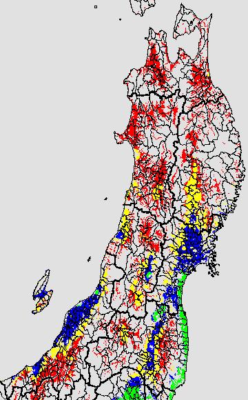 安全作期の策定にある気温指標のうち、夏作物の生育可能な気温指標10℃を用いて表示しています。10℃以下については1℃刻みで表示し、可能域がどのように推移するかをみるものです。