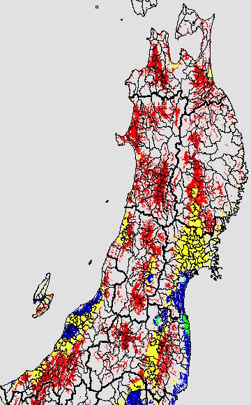 安全作期の策定にある気温指標のうち、稚苗移植の安全早限日の気温指標12.0℃を用いて表示しています。12.0℃以下については1℃刻みで表示し、可能域がどのように推移するかをみるものです。