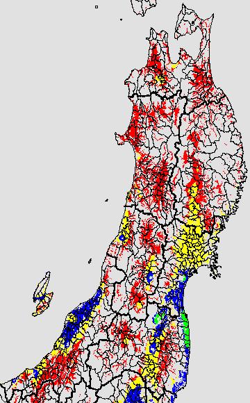 安全作期の策定にある気温指標のうち、中苗・成苗移植の安全早限日の気温指標13.0℃を用いて表示しています。13.0℃以下については1℃刻みで表示し、可能域がどのように推移するかをみるものです。