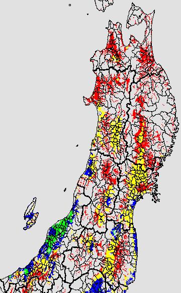 安全作期の策定にある気温指標のうち、中苗・成苗移植の安全早限日の気温指標13.0℃を用いて表示しています。13.0℃以下については1℃刻みで表示し、可能域がどのように推移するかをみるものです。