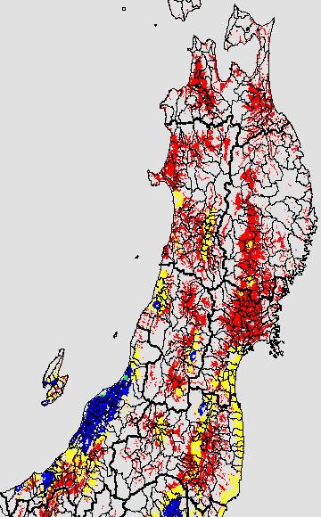 安全作期の策定にある気温指標のうち、中苗・成苗移植の安全早限日の気温指標13.5℃を用いて表示しています。13.5℃以下については1℃刻みで表示し、可能域がどのように推移するかをみるものです。