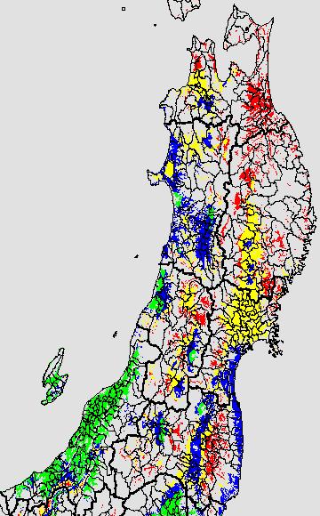 安全作期の策定にある気温指標のうち、稚苗移植の安全早限日の気温指標12.0℃を用いて表示しています。12.0℃以下については1℃刻みで表示し、可能域がどのように推移するかをみるものです。