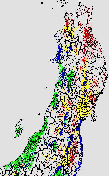 安全作期の策定にある気温指標のうち、稚苗移植の安全早限日の気温指標12.0℃を用いて表示しています。12.0℃以下については1℃刻みで表示し、可能域がどのように推移するかをみるものです。