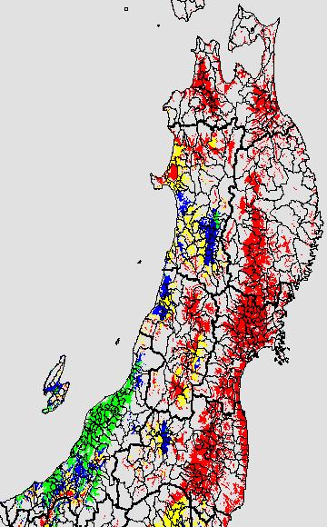 安全作期の策定にある気温指標のうち、中苗・成苗移植の安全早限日の気温指標13.5℃を用いて表示しています。13.5℃以下については1℃刻みで表示し、可能域がどのように推移するかをみるものです。