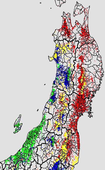 安全作期の策定にある気温指標のうち、中苗・成苗移植の安全早限日の気温指標13.0℃を用いて表示しています。13.0℃以下については1℃刻みで表示し、可能域がどのように推移するかをみるものです。
