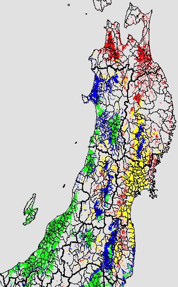 安全作期の策定にある気温指標のうち、中苗・成苗移植の安全早限日の気温指標13.0℃を用いて表示しています。13.0℃以下については1℃刻みで表示し、可能域がどのように推移するかをみるものです。