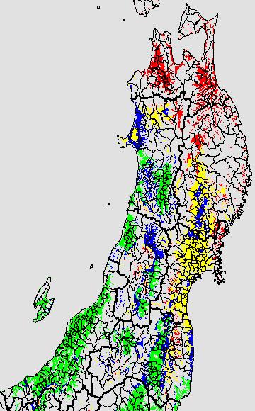 安全作期の策定にある気温指標のうち、乾田直播の安全早限日の気温指標13.5℃を用いて表示しています。13.5℃以下については1℃刻みで表示し、可能域がどのように推移するかをみるものです。