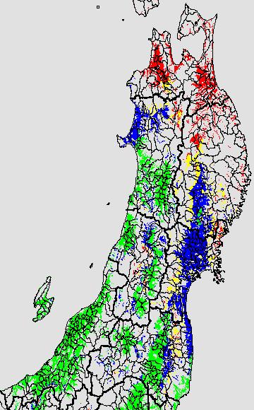 安全作期の策定にある気温指標のうち、中苗・成苗移植の安全早限日の気温指標13.0℃を用いて表示しています。13.0℃以下については1℃刻みで表示し、可能域がどのように推移するかをみるものです。