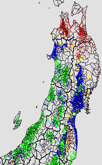 各種文献などを参考にして、分げつ形成に関する限界温度を平均気温で15℃と設定し、15℃以上については1℃刻みで表示します。過去7日の移動平均値で示す。分げつの形成が遅延すると予想される地域を監視するものです。