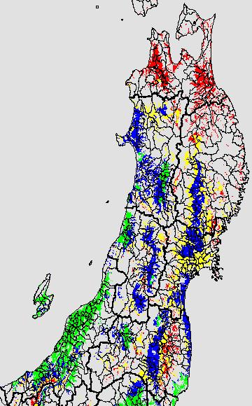各種文献などを参考にして、分げつ形成に関する限界温度を平均気温で15℃と設定し、15℃以上については1℃刻みで表示します。過去7日の移動平均値で示す。分げつの形成が遅延すると予想される地域を監視するものです。