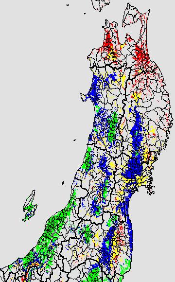各種文献などを参考にして、分げつ形成に関する限界温度を平均気温で15℃と設定し、15℃以上については1℃刻みで表示します。過去7日の移動平均値で示す。分げつの形成が遅延すると予想される地域を監視するものです。