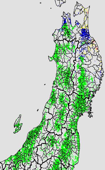 各種文献などを参考にして、分げつ形成に関する限界温度を平均気温で15℃と設定し、15℃以上については1℃刻みで表示します。過去7日の移動平均値で示す。分げつの形成が遅延すると予想される地域を監視するものです。