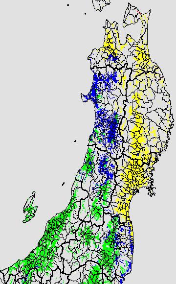 開花・受精期も低温に弱い時期です。文献等を参考に開花・受精に不適な地域の移り変わりを、最高気温を用いて前5日間の移動平均値で図示します。