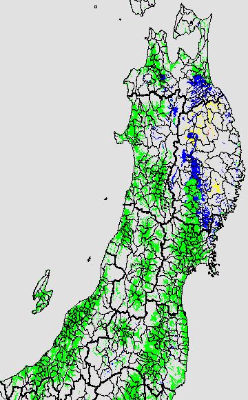 登熟停止が懸念される最低気温として、八柳(1960)は10℃を設定している。それを基に、極端な低温が来た地域の移り変わりを、最低気温の前3日の移動平均値で図示する。