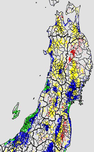 登熟停止が懸念される最低気温として、八柳(1960)は10℃を設定している。それを基に、極端な低温が来た地域の移り変わりを、最低気温の前3日の移動平均値で図示する。