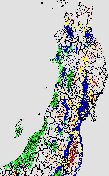 安全作期の策定にある気温指標のうち、中苗・成苗移植の安全早限日の気温指標13.0℃を用いて表示しています。13.0℃以下については1℃刻みで表示し、可能域がどのように推移するかをみるものです。