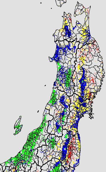 安全作期の策定にある気温指標のうち、稚苗移植の安全早限日の気温指標12.0℃を用いて表示しています。12.0℃以下については1℃刻みで表示し、可能域がどのように推移するかをみるものです。