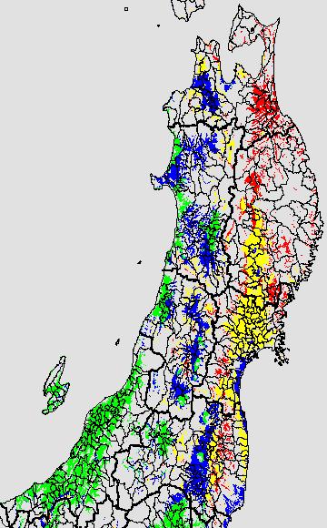 安全作期の策定にある気温指標のうち、中苗・成苗移植の安全早限日の気温指標13.5℃を用いて表示しています。13.5℃以下については1℃刻みで表示し、可能域がどのように推移するかをみるものです。