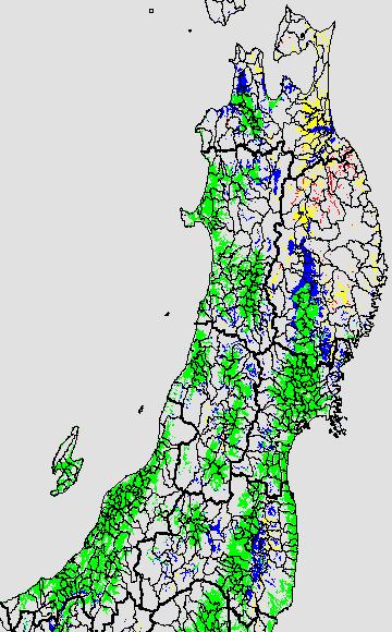 安全作期の策定にある気温指標のうち、中苗・成苗移植の安全早限日の気温指標13.0℃を用いて表示しています。13.0℃以下については1℃刻みで表示し、可能域がどのように推移するかをみるものです。