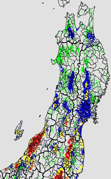 安全作期の策定にある気温指標のうち、いもち病蔓延可能日の平均気温指標20.0℃を用いて表示しています。20.0℃未満については1℃刻みで表示し、可能域がどのように推移するかをみるものです。