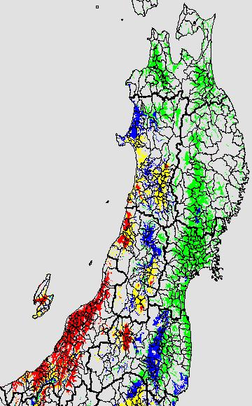 安全作期の策定にある気温指標のうち、いもち病蔓延可能日の平均気温指標20.0℃を用いて表示しています。20.0℃未満については1℃刻みで表示し、可能域がどのように推移するかをみるものです。