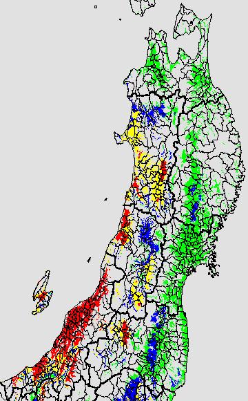 安全作期の策定にある気温指標のうち、いもち病蔓延可能日の平均気温指標20.0℃を用いて表示しています。20.0℃未満については1℃刻みで表示し、可能域がどのように推移するかをみるものです。