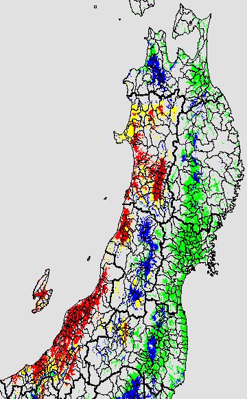 安全作期の策定にある気温指標のうち、いもち病蔓延可能日の平均気温指標20.0℃を用いて表示しています。20.0℃未満については1℃刻みで表示し、可能域がどのように推移するかをみるものです。