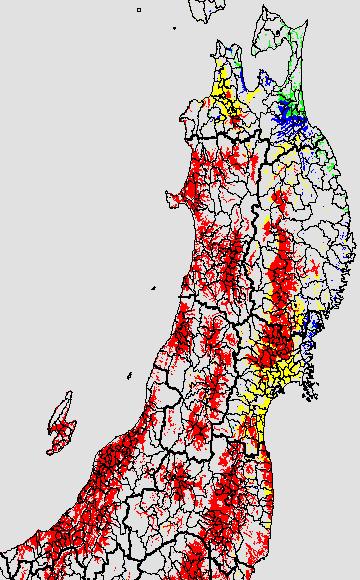 安全作期の策定にある気温指標のうち、いもち病蔓延可能日の平均気温指標20.0℃を用いて表示しています。20.0℃未満については1℃刻みで表示し、可能域がどのように推移するかをみるものです。