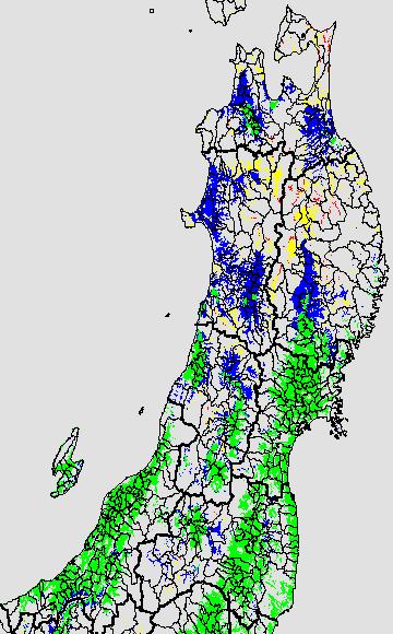 この時期平均気温が20℃以下になると、低温障害が発生しやすくなる。そこで、20℃を限界気温として、深水管理の必要な地域を特定する。また、平均気温が20〜21℃の地域も特に前歴深水管理を行う方が望ましい。この気温指標は前7日間の移動平均値で示す。
