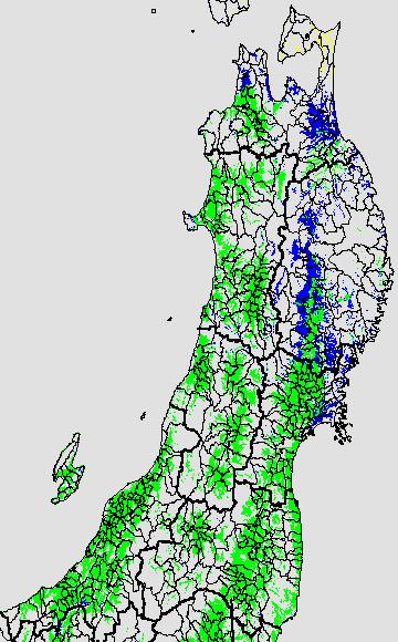 開花・受精期も低温に弱い時期です。文献等を参考に開花・受精に不適な地域の移り変わりを、最高気温を用いて前5日間の移動平均値で図示します。