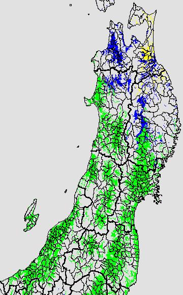 低温障害の発生の基準温度として、最低気温17℃が一般によく使われます。それを基に、極端な低温が来た地域の移り変わりを、最低気温の前3日の移動平均値で図示します。