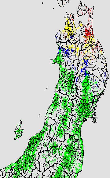 この時期平均気温が20℃以下になると、低温障害が発生しやすくなる。そこで、20℃を限界気温として、深水管理の必要な地域を特定する。また、平均気温が20〜21℃の地域も特に前歴深水管理を行う方が望ましい。この気温指標は前7日間の移動平均値で示す。