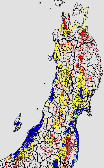 低温障害の発生の基準温度として、最低気温17℃が一般によく使われます。それを基に、極端な低温が来た地域の移り変わりを、最低気温の前3日の移動平均値で図示します。
